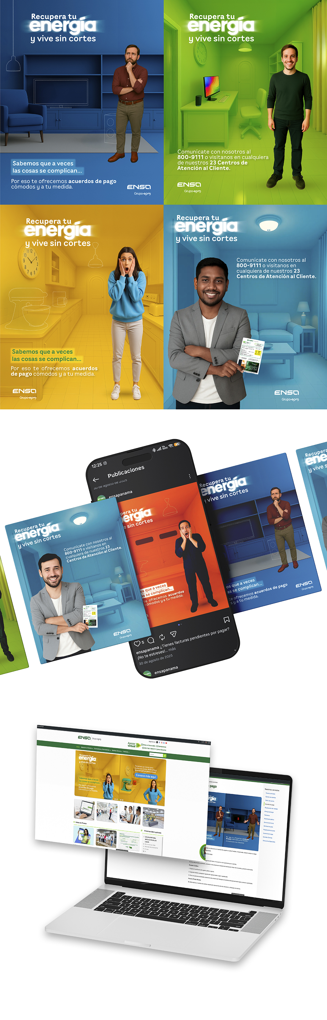 Esta campaña para ENSA Panamá se enfocó en motivar a clientes con saldos vencidos a ponerse al día, promoviendo acuerdos de pago desde un enfoque empático y de acompañamiento. La estrategia se ejecutó a través de canales digitales, redes sociales, web y avisos en facturación, buscando facilitar la regularización sin generar presión o rechazo en el cliente.